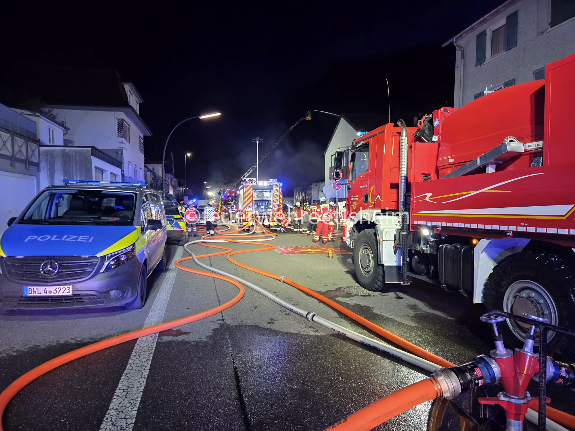 Die Einsatzkräfte bauten hierzu eine sogenannte Doppelleitung auf, um ausreichend Löschwasser zur Brandstelle zu transportieren. Über mehrere hundert Meter hinweg wurden Schläuche verlegt und leistungsstarke Pumpen eingesetzt, um einen konstanten Wasserdruck zu gewährleisten.