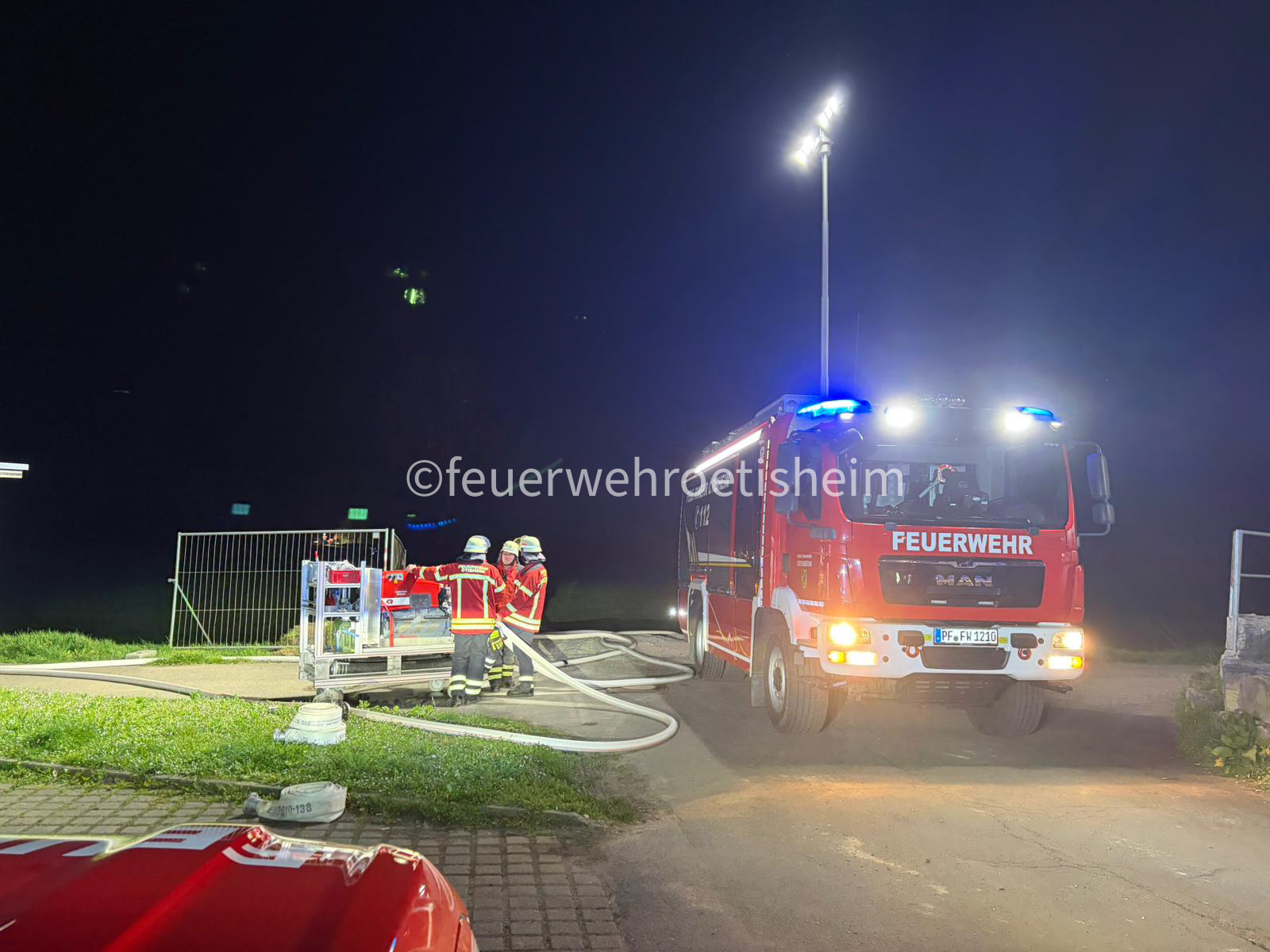 Bei einem umfangreichen Feuerwehreinsatz kam es am gestrigen Abend zu einer aufwendigen Wasserförderung über lange Wegstrecke. Aufgrund der größe von dieser Einsatzstelle und benötigter großer Mengen von Löschwasser musste die Wasserversorgung aus der Enz sichergestellt werden.